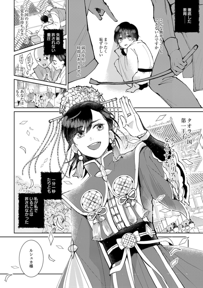 タオラン国の第一王子ルシュカ・ハリアムが、外交先で姿を消した。家臣たちは国家機密を漏らさぬよう必死に捜すが、見つからない。王子は、人買いの手にわたり、「獣人国」の娼館へと売られていた。