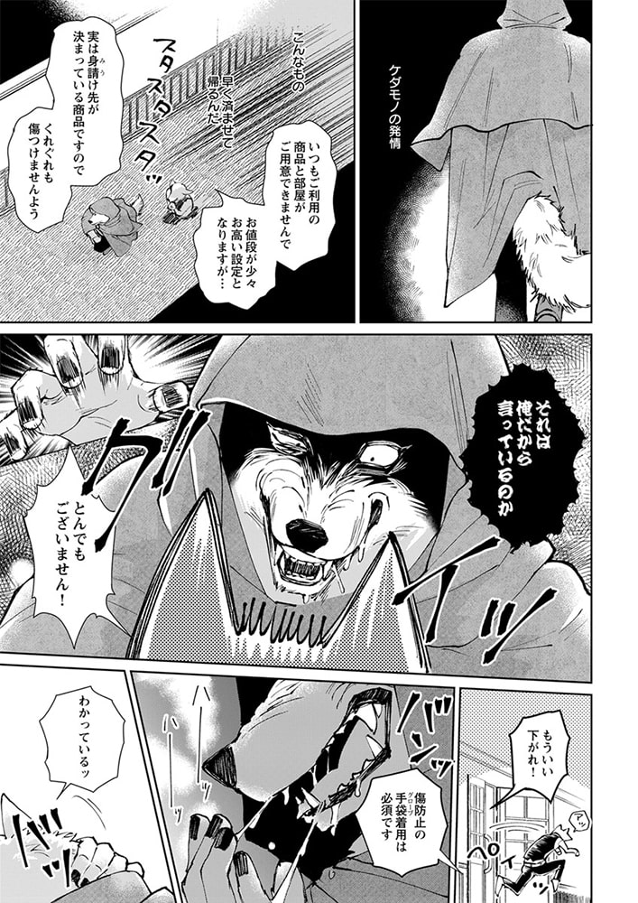 一方、獣人が支配し、人間(ヒト)が商品として扱われる獣人国では、ガルアドスという名の獣人が、その娼館を訪れていた。偶然ルシュカを買ったガルアドスは、その体からあふれる強烈な芳香に驚き、欲情を激しく刺激される。薬でとろけるルシュカを思うままに抱き、欲望を遂げたガルアドスだったが、ルシュカの「たすけて…」という言葉に心を動かされ……?