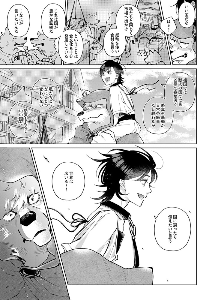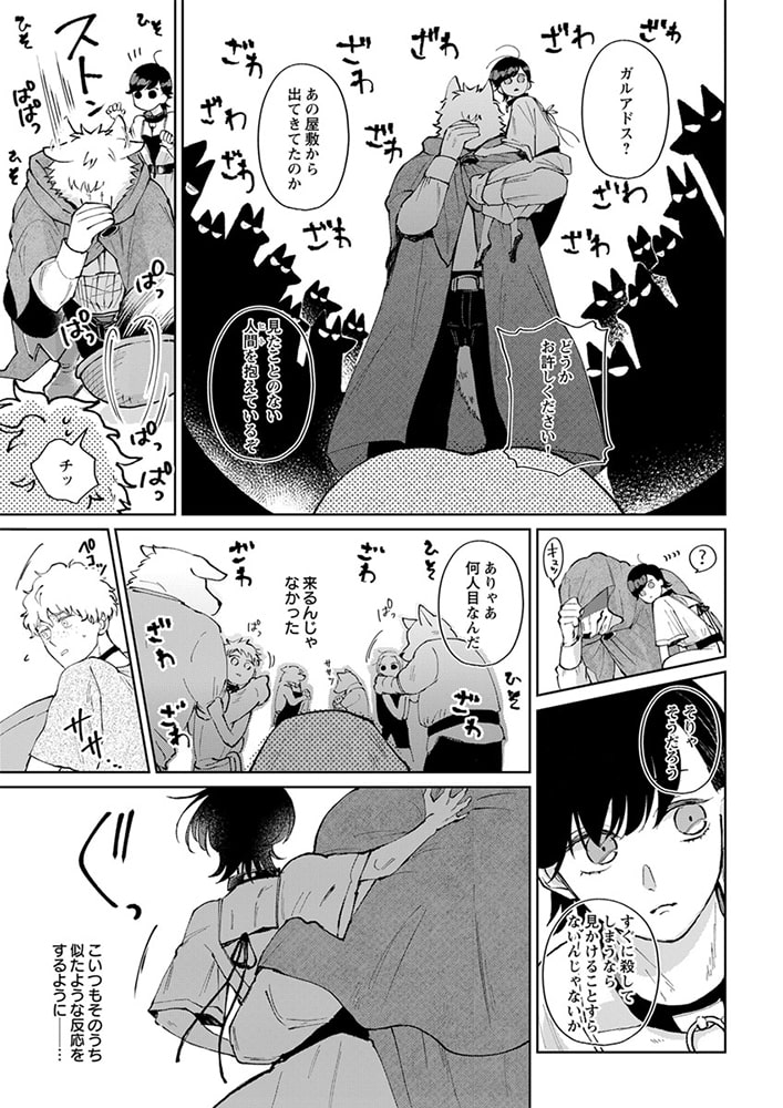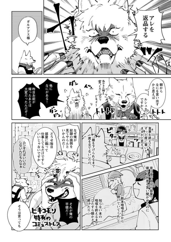 一方、獣人が支配し、人間(ヒト)が商品として扱われる獣人国では、ガルアドスという名の獣人が、その娼館を訪れていた。偶然ルシュカを買ったガルアドスは、その体からあふれる強烈な芳香に驚き、欲情を激しく刺激される。薬でとろけるルシュカを思うままに抱き、欲望を遂げたガルアドスだったが、ルシュカの「たすけて…」という言葉に心を動かされ……?
