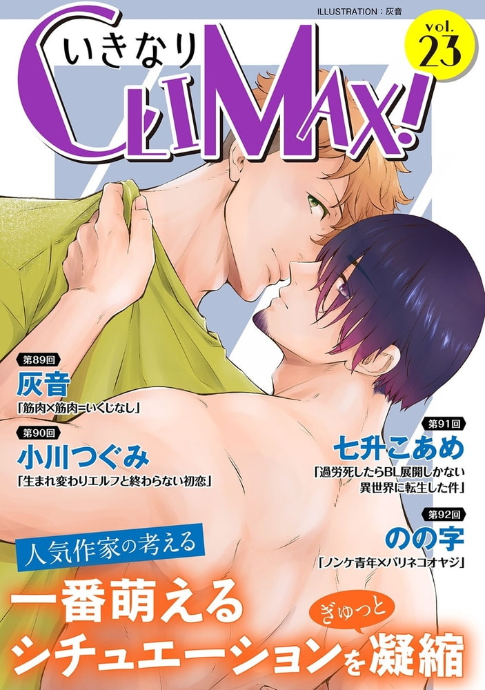 モバイルBL宣言発のリレー企画!BL作家ならではのこだわりを存分に詰め込んだショートマンガをお届けします。当企画では先生方が“萌える…!”と感じるキャラや関係性、シチュエーション等をふんだんに詰め込んで、ストーリーのクライマックスのみを抜粋しました!!人気作家の性癖がぎゅっと凝縮された作品が読めるのは『いきなりCLIMAX!』だけ☆ 執筆陣は毎回変わるのでお楽しみに!