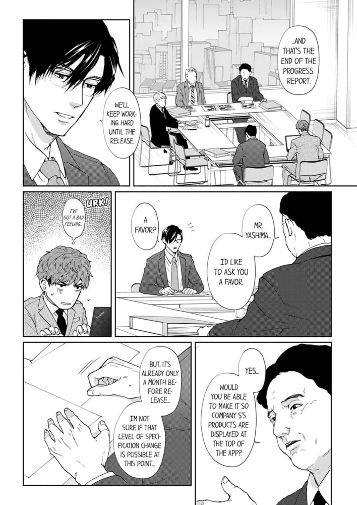 Sakai is an office worker who has arranged to meet his favorite male “pet” he found on a dating app. He’s looking forward to the night with the sexy guy who keeps showing off his risque underwear and anal plugs, but today’s the one day that he’s stuck working late…! While he’s having a smoke to get away from his boss, Yashima, who’s giving him a hard time, he gets an extra sexy selfie from his pet! He’s so turned on that he runs to the restroom, where he finds Yashima in an indecent state…!?