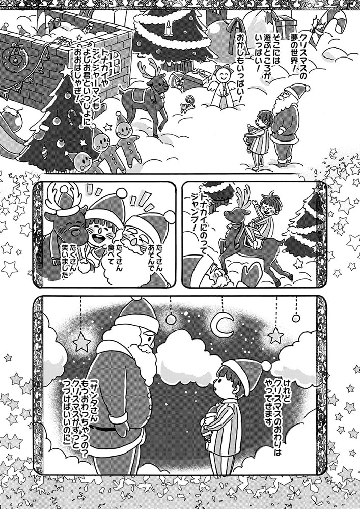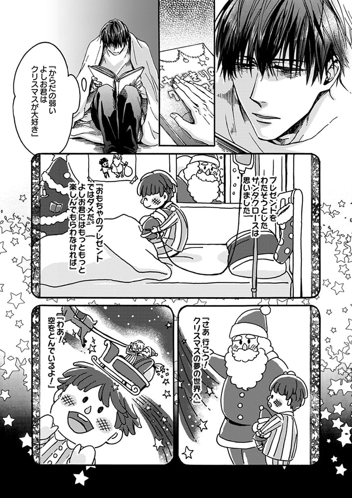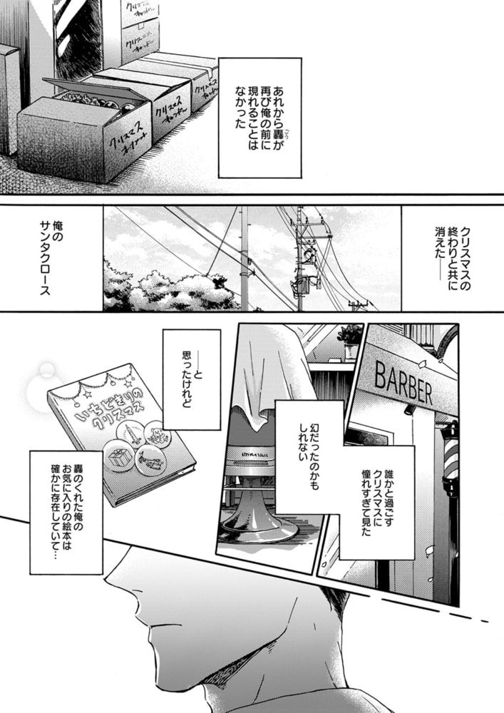 「クリスマス・プレゼントを届けに来たんだ。俺は君の思い描く『理想の恋人』だからーー。」森平喜義(キヨシ)はクリスマスを恋人と過ごせたことがない。甘いロマンチックな聖夜を一緒に過ごすことを夢見ているのに、今年もイヴ直前に恋人にフラれてしまった。ところが、傷心するキヨシの前に、謎のサンタが現れる。「ロマンチックなクリスマスを共にする、理想の恋人が欲しいんだろう?」突然のことに驚きつつも、彼の端正な容姿や、自分の願いを受け止めてくれる深い優しさに心惹かれたキヨシは、サンタとイヴの夜を共にする。ところが、サンタには『とある秘密』があって――? クリスマスの出会いから始まった、ちょっと不思議でハートフルなラブストーリー!