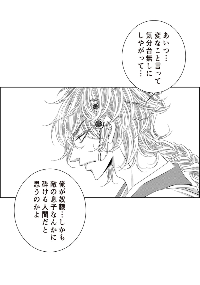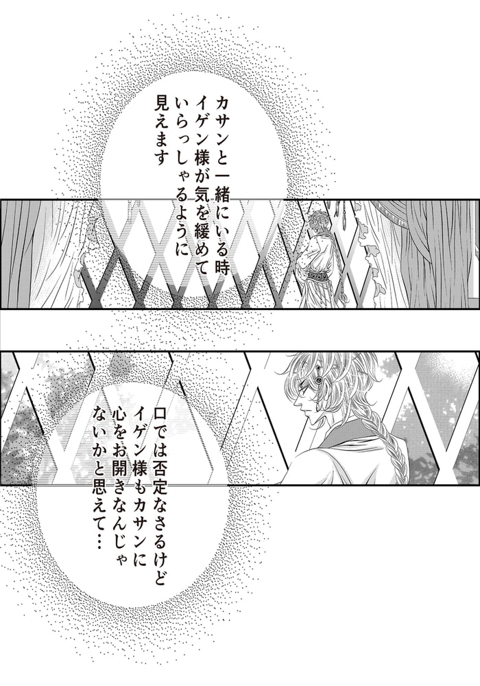 家族を皆殺しにした張本人がイゲンであるということをまだ知らないカサンは、彼の湯浴みの世話をする奴○となり、冷血漢とばかり思っていたイゲンに得体の知れない魅力を感じ、徐々に惚れ込んでいく。