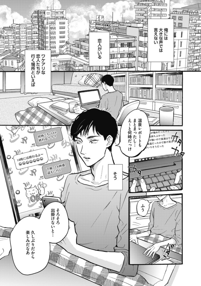 高校時代から恋人同士で温泉大好きコンビの律と朝陽。