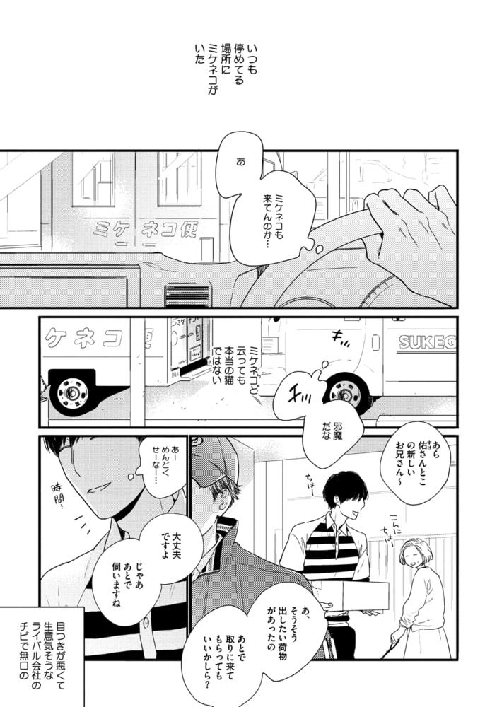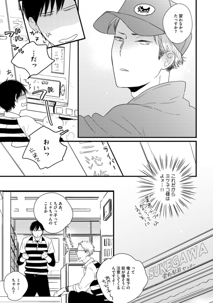 配送業者に勤める“モテる佑川男子”天野は、ライバル会社のミケちゃんこと三池にイラついていた。 なぜなら愛想が無い上、ちびっこのくせに自分より力持ちで生意気だから!! そんなある日、偶然三池宛の荷物を配達することに…。 アダルトグッズサイトの荷物だと知った天野は、出来心から三池に「使っているとこ見せてよ」と迫ってしまう。 ところが三池の痴態を目の前にし、自らも興奮を覚えてしまい?? 【それ、挿れます? どエロいミケちゃんの誘いに…??】