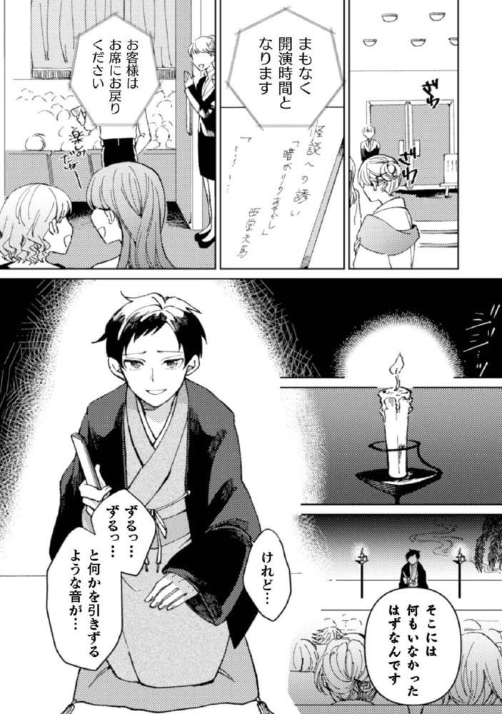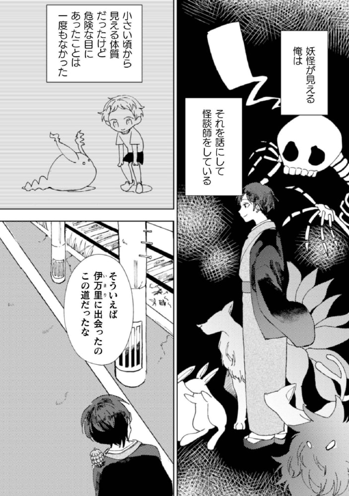怪談師の西堂天馬は、昔から妖怪が見える体質で見たことを元に話にしていた。