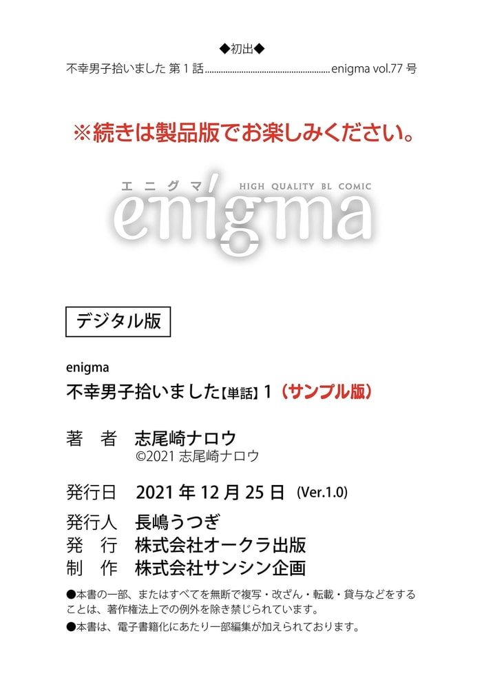 【本作はWEB雑誌「enigma」に収録されています。重複購入にご注意ください。】