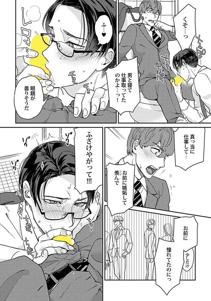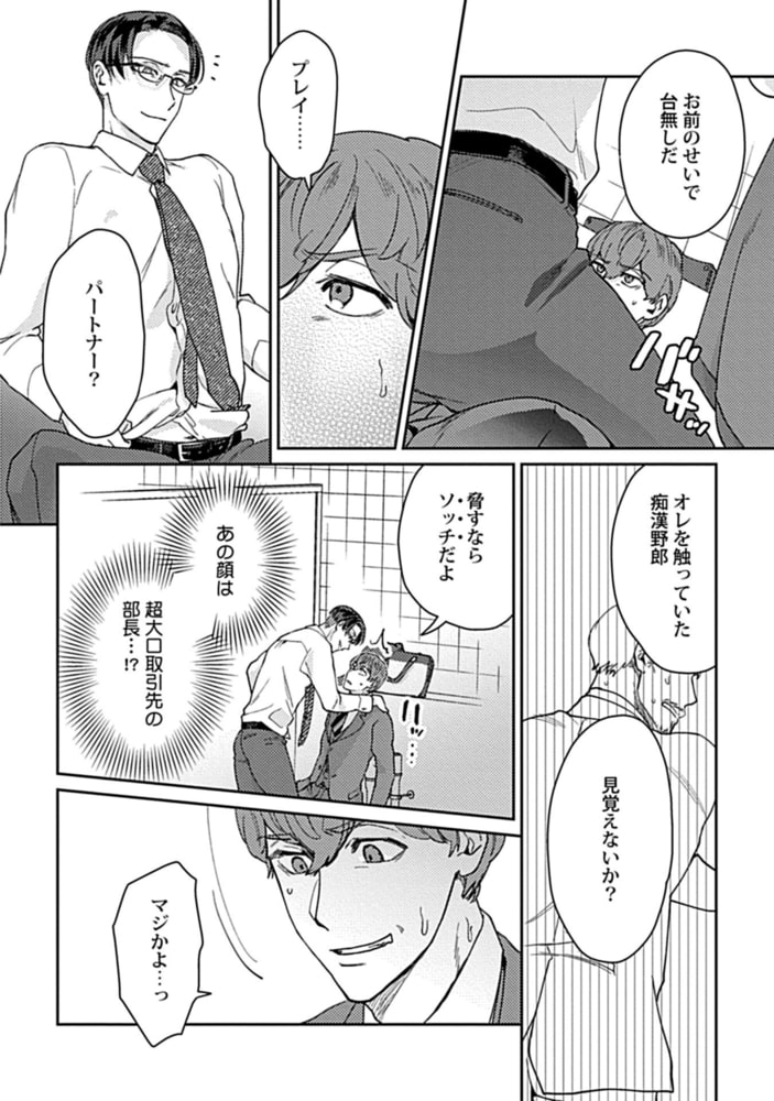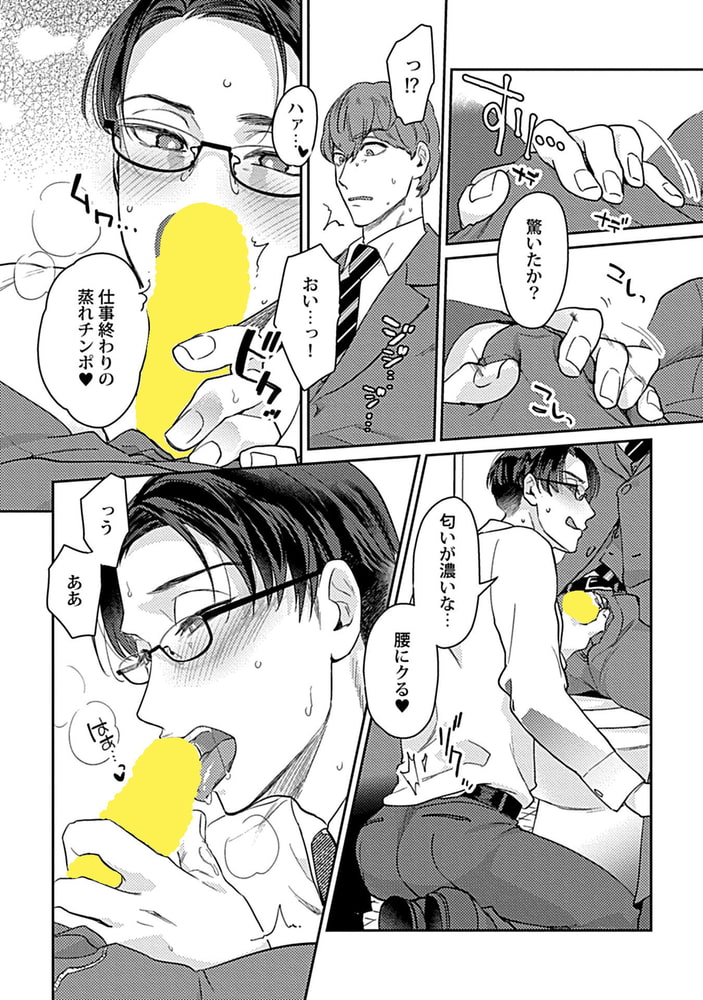 渋江明彦は会社でも一目置かれているエース様だ。そんな彼がまさか目の前で痴○されてるなんて…。その姿を目撃した同僚である高嶋は、痴○をネタに渋江を個室トイレに連れ込む事に。知らないおっさんに尻揉まれて感じてるくらいだからこれくらいいいよな?と脅しをかけたつもりの高嶋だったが、渋江はエッチな身体を晒してきて…?