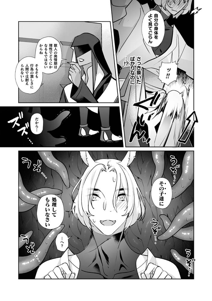 発情期を過ごすために地下室にいたのは催淫効果を持つ触手たちがリチェの身体をまさぐりイかせまくりで彼は本能のまま快楽を貪りまくるのであった。