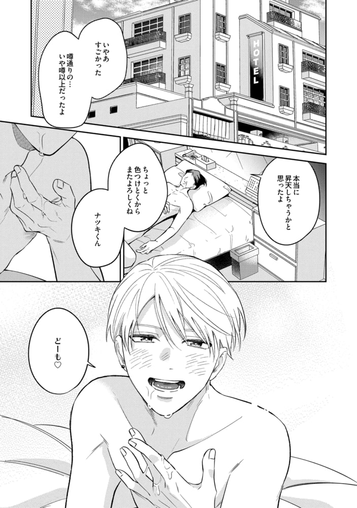 ――"神の使い"と称され、どんな男でもイかせることができるフリーのウリ専・ナツキ。噂が噂を呼び、がっぽり稼いでいたある日、花園グループの御曹司・花園聡に拉致される。イかせたら百万円という誘惑に負けて契約してしまうが、契約書をよく読むと専属契約で!? 御曹司から逃げ出せたら反故にできると約束させるも、何度も逃げては捕まり、彼とセックスすることに――。