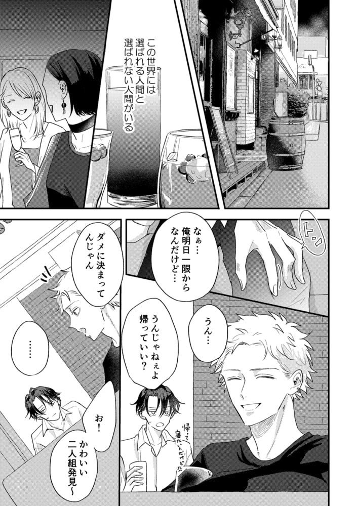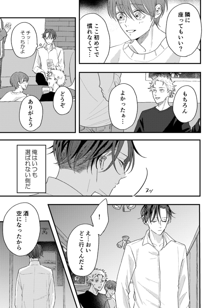 大学生の嵐は、いつも「選ばれない」側の人間。今日もいいなと思った子は他の誰かを選んでいく。(俺のことを見てくれる人なんて居ない)バーで1人不貞腐れていると、小鳥という名の男に誘われる。タイプじゃないけどこの際誰でもいいや―その程度の相手だったはずなのに…。いざ抱き合ってみると指を1本入れただけで、ビクビクと初々しく反応して締め付けるナカ。狭いそこは最高に気持ちよくて、必死にしがみ付いてくる小鳥の可愛さにのめり込みそうになる。でも、初対面のはずなのに小鳥は何故か教えてなかったはずの嵐の名前を呼んできて―?愛されたいこじらせ系ネガティブ男子×一途な誘い受けピュア男子の純情初恋ストーリー。