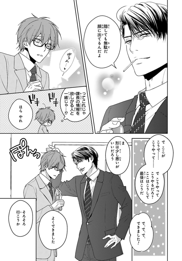「俺が欲しいのか? じゃあ力を抜け」課長の熱にナカをこじ開けられる。苦手な上司だったのに、躰が壊れるまで突き上げてほしい、だなんて…ッ…!クジ運のない新入社員・沢木は、忘年会で催す宴会芸のペア決めで、直属の上司・東郷課長を引き当ててしまう。野性味のあるイケメンで何でもスマートにこなす完璧な男、東郷。一緒にいると緊張して苦手なのに、宴会芸を二人きりで準備するはめに…。するとそんなある日、東郷に初めて褒められ嬉し泣きした沢木は「そんなに俺が好きか?」とあらぬ誤解を生んでしまう!しかも東郷は男もOKなバイの、自称ヘンタイだった!?巧みな舌で乳首を舐められ、さらに課長の口の中でイかされて――