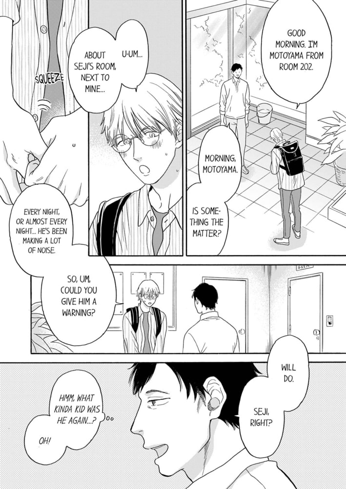 Kikura is in his 40’s and he’s the caretaker of a college dorm. One day, he gets a noise complaint from a student about his neighbor Seji, who’s well-known as a serial philanderer, and heads up to his room. When he does, he finds Seji absorbed in sex with another man! Being interrupted in the middle of it, Seji tells him “I ain’t cum yet, so take responsibility!” and suddenly a burning hot cock is shoved into his mouth…!? Not having had sex in a long time, Kikura starts aching down there with Seji’s thrusts. Now begins the supercharged sexy cohabitation life between the sex-fiend student dom and the subconsciously pervy caretaker!
