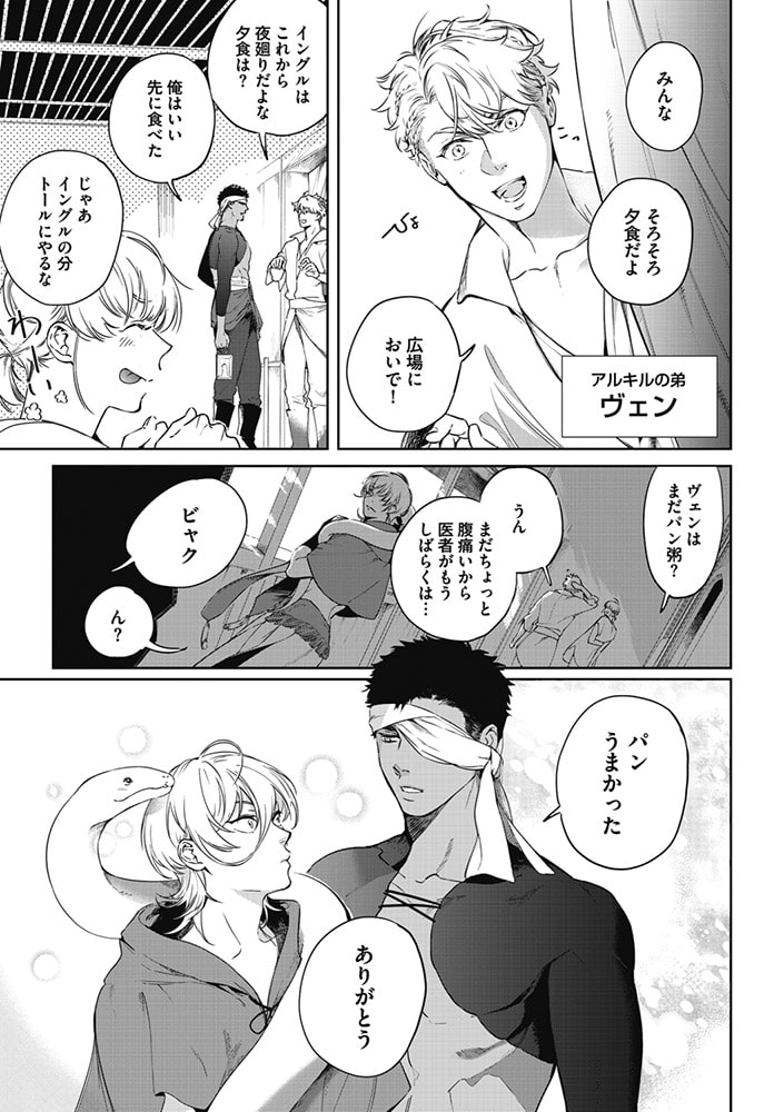 元奴○商人の黒鷲は、とある争いで奴○を解放することになってしまうのだが、彼らを仲間とあらため新しく流民の集落の長となる。雪の国からやってきたアルキルとその弟、幼馴染のトールやイングル、水売りの集落からきたビャクなどと共に力を合わせ、皆が住みよい集落を作るために日々奮闘しているのだが…