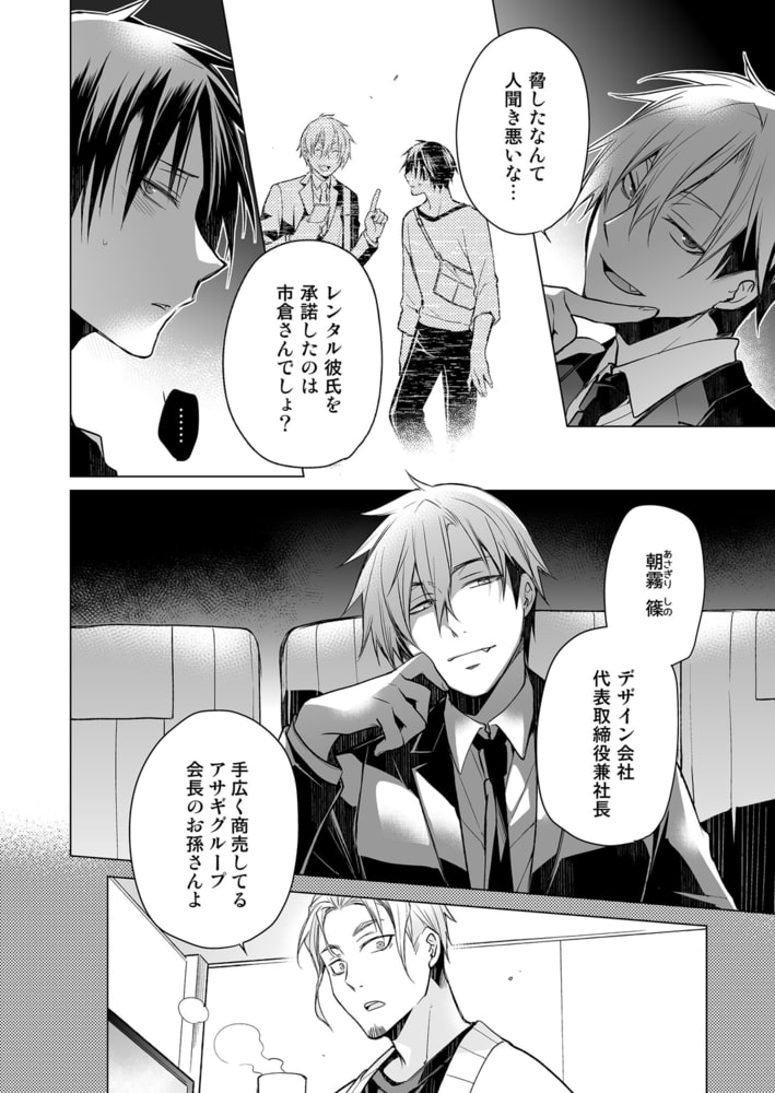 「レンタル彼氏」を運営しているお店の事務員として働く市倉は、ある日急病で倒れたキャストの代打依頼をされる。買い物の付き添いだけだからとオーナーに説得され渋々承諾するが、朝霧という男の依頼は「デートの恋人役」だった。今更断る訳にもいかず、恋人役を演じる市倉だったが強引に朝霧の自宅に連れ込まれてしまい!?「デートはセックスまでがデートだろ?」と朝霧のドSな本性が露わになり、お尻やアソコをエッチに弄られる!抵抗しようとする市倉だったが、激しくナカを擦られ、体はどんどん気持ちよくなっていき…。デートの回数を重ねる毎に朝霧の調教はどんどんエスカレートしてく!