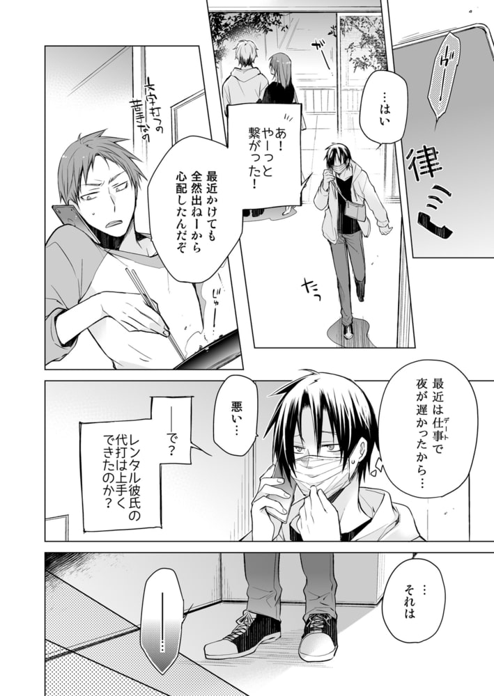 「レンタル彼氏」を運営しているお店の事務員として働く市倉は、ある日急病で倒れたキャストの代打依頼をされる。買い物の付き添いだけだからとオーナーに説得され渋々承諾するが、朝霧という男の依頼は「デートの恋人役」だった。今更断る訳にもいかず、恋人役を演じる市倉だったが強引に朝霧の自宅に連れ込まれてしまい!?「デートはセックスまでがデートだろ?」と朝霧のドSな本性が露わになり、お尻やアソコをエッチに弄られる!抵抗しようとする市倉だったが、激しくナカを擦られ、体はどんどん気持ちよくなっていき…。デートの回数を重ねる毎に朝霧の調教はどんどんエスカレートしてく!