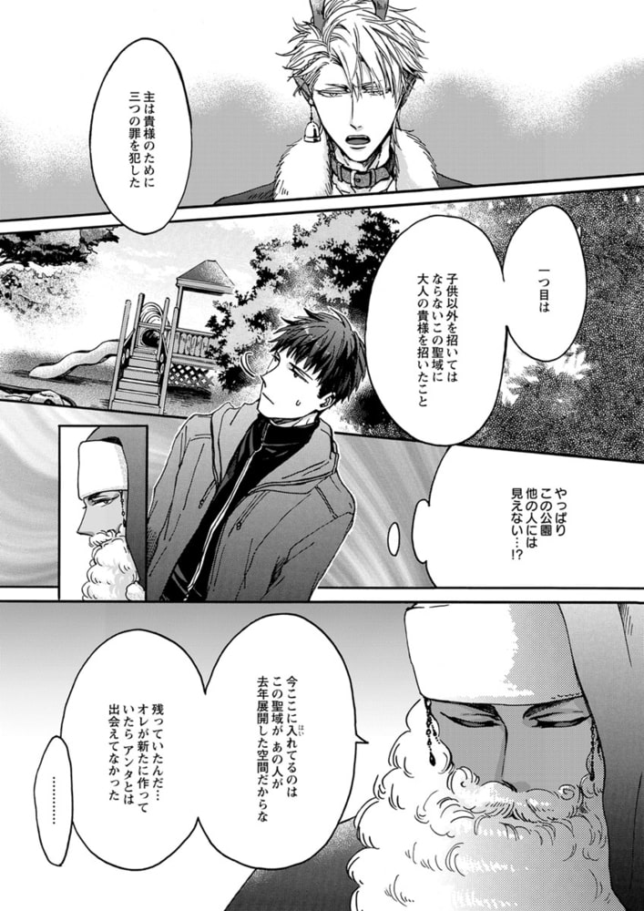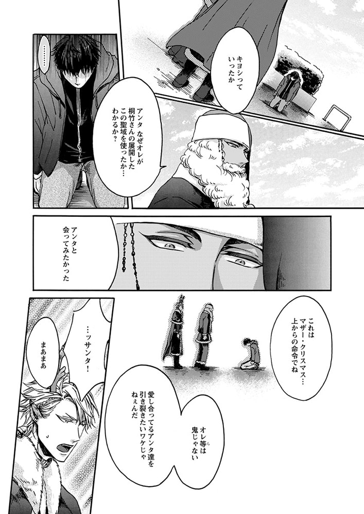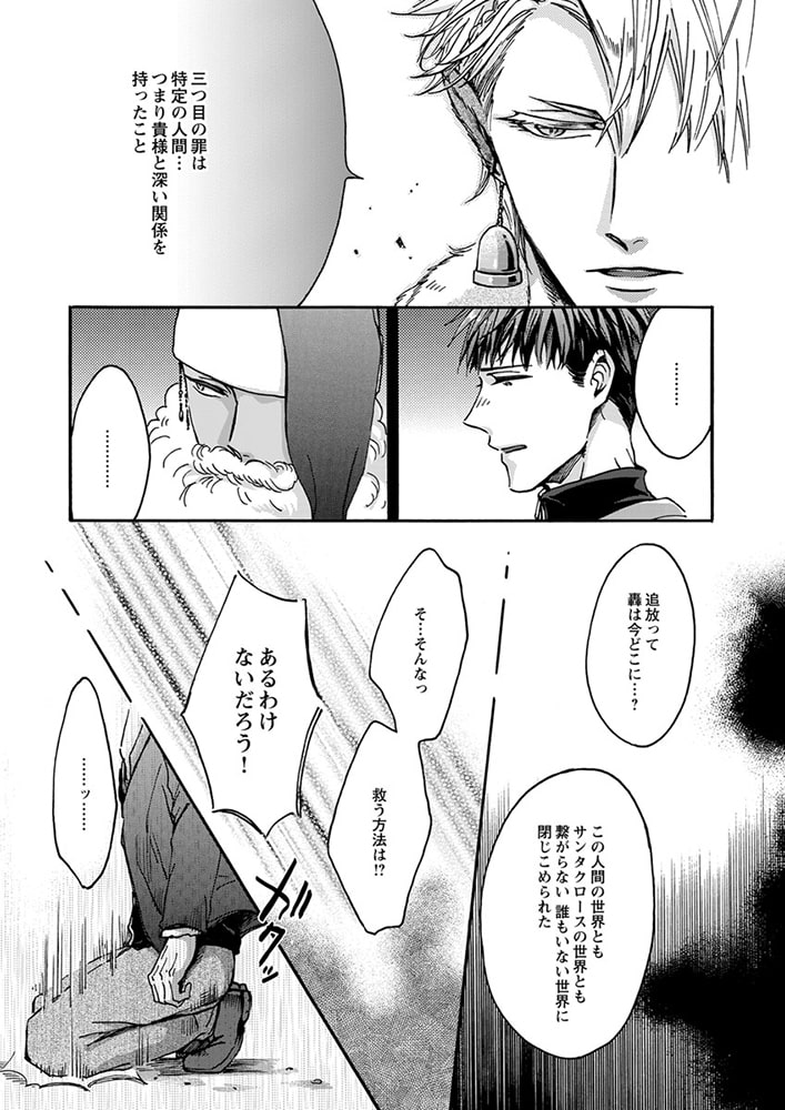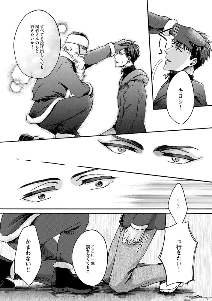 「クリスマス・プレゼントを届けに来たんだ。俺は君の思い描く『理想の恋人』だからーー。」森平喜義(キヨシ)はクリスマスを恋人と過ごせたことがない。甘いロマンチックな聖夜を一緒に過ごすことを夢見ているのに、今年もイヴ直前に恋人にフラれてしまった。ところが、傷心するキヨシの前に、謎のサンタが現れる。「ロマンチックなクリスマスを共にする、理想の恋人が欲しいんだろう?」突然のことに驚きつつも、彼の端正な容姿や、自分の願いを受け止めてくれる深い優しさに心惹かれたキヨシは、サンタとイヴの夜を共にする。ところが、サンタには『とある秘密』があって――? クリスマスの出会いから始まった、ちょっと不思議でハートフルなラブストーリー!