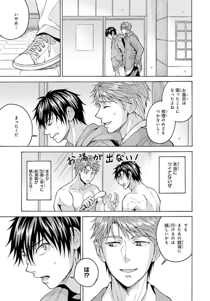 「白いタオル、それってOKのサインだよね?」近所唯一の銭湯はハッテン場!?ルールを知らずに入ってしまった上京ノンケ、貞操の危機――!アクション俳優を目指し、意気揚々と上京してきた湯沢稜己。上京初日の買い物にいく際中、自転車に水を掛けられてずぶ濡れになってしまう。家のボロアパートには風呂が無いため仕方なく近所の銭湯に向かうと、さっき水を掛けてきた男・野上将吾と再会して!?怒ってはいたものの自慢の筋肉を褒められ、意外といい奴…?と気を許した瞬間、アソコを掴まれ扱かれてしまう!突然のことに抵抗するも、将吾は全然止めてくれないどころか尻を掴まれ舌でナカを解され…嫌なのに下半身は反応してしまい!?