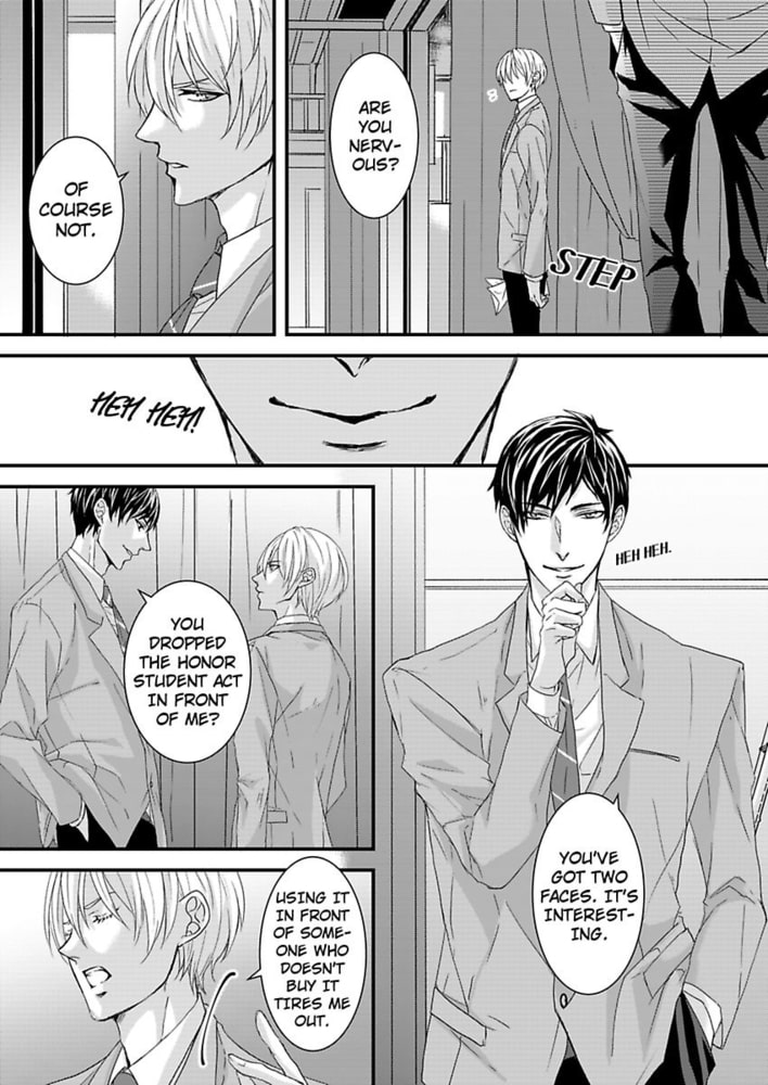 How does he expect me to continue when he's acting so carelessly? I can't keep my voice down, and now the whole school is gonna hear us!