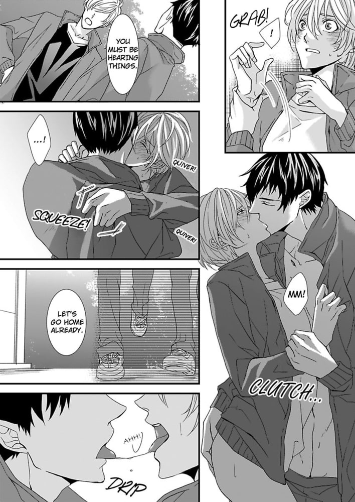 How does he expect me to continue when he's acting so carelessly? I can't keep my voice down, and now the whole school is gonna hear us!