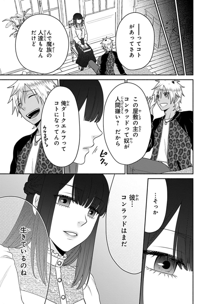 「お前はダークエルフであったな。つまり…色仕掛けのつもりか」見た目イケイケな黒ギャルなのに実は童貞の慧真は、意中の女の子に告白した瞬間に異世界召喚されてしまう!しかも召喚者から心に傷を負った魔族のご主人様の脱引きこもりの使命を与えられ!?使命を全うしないと現世には帰れないため、やむなく世話係を引き受けた慧真。早速この屋敷の主・コンラッドの元に向かうと、銀髪・褐色の見た目からダークエルフに勘違いされて!?更にダークエルフの特性である“性への貪欲さ”から、誘惑してきたと思われ「返り討ちにしてやる」と、したことのない深い口づけに触れられたことのないお尻の奥…何もかも初めてを奪われて――?