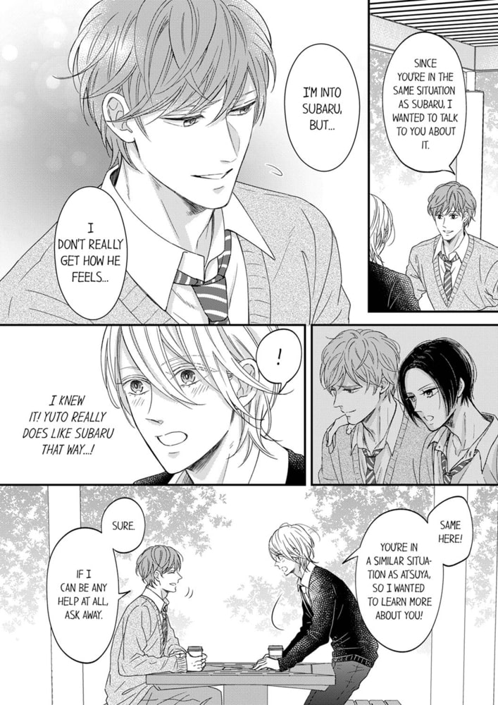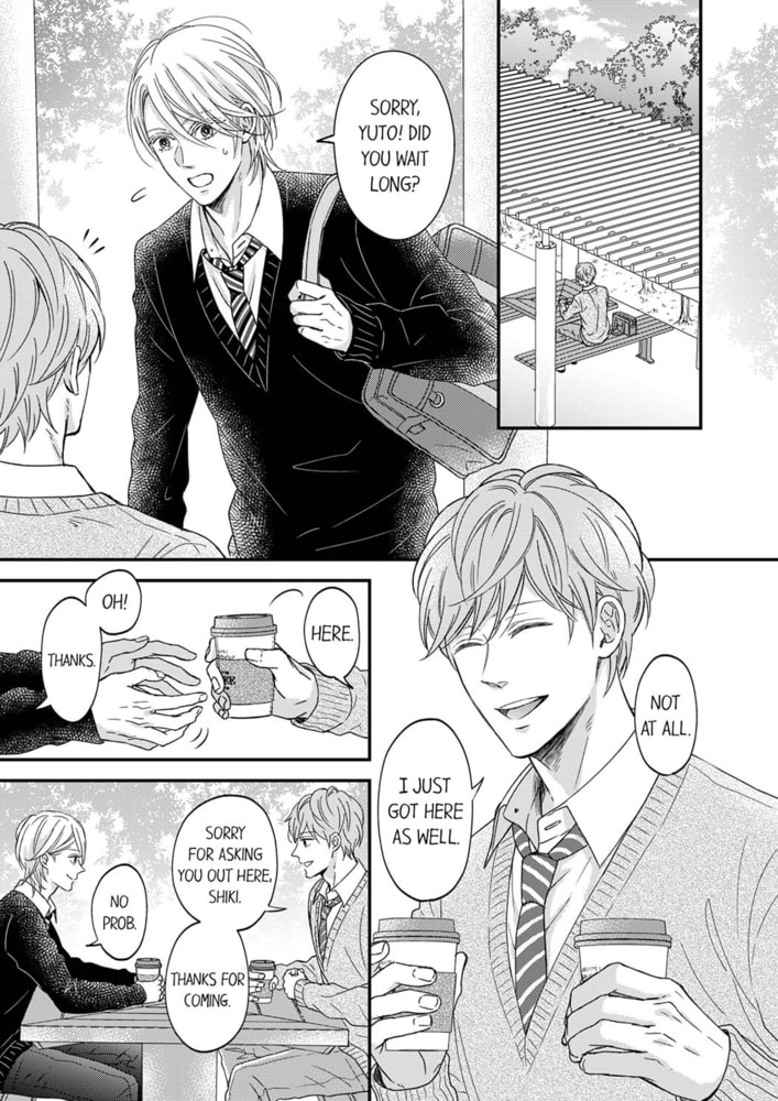Shiki, who gets randomly hit on by the other guys all the time, has only one male friend, an underclassman Atsuya. Since he can talk and joke around with him like normal friends do, Atsuya has taken a special place in his heart. However, after finding out that Atsuya has a crush on someone, Shiki starts to feel a strange thirst and a burning sensation in his body. Gradually losing control over his growing desire, Shiki kisses Atsuya in a daze. What’s the truth behind Shiki’s behavior...?!