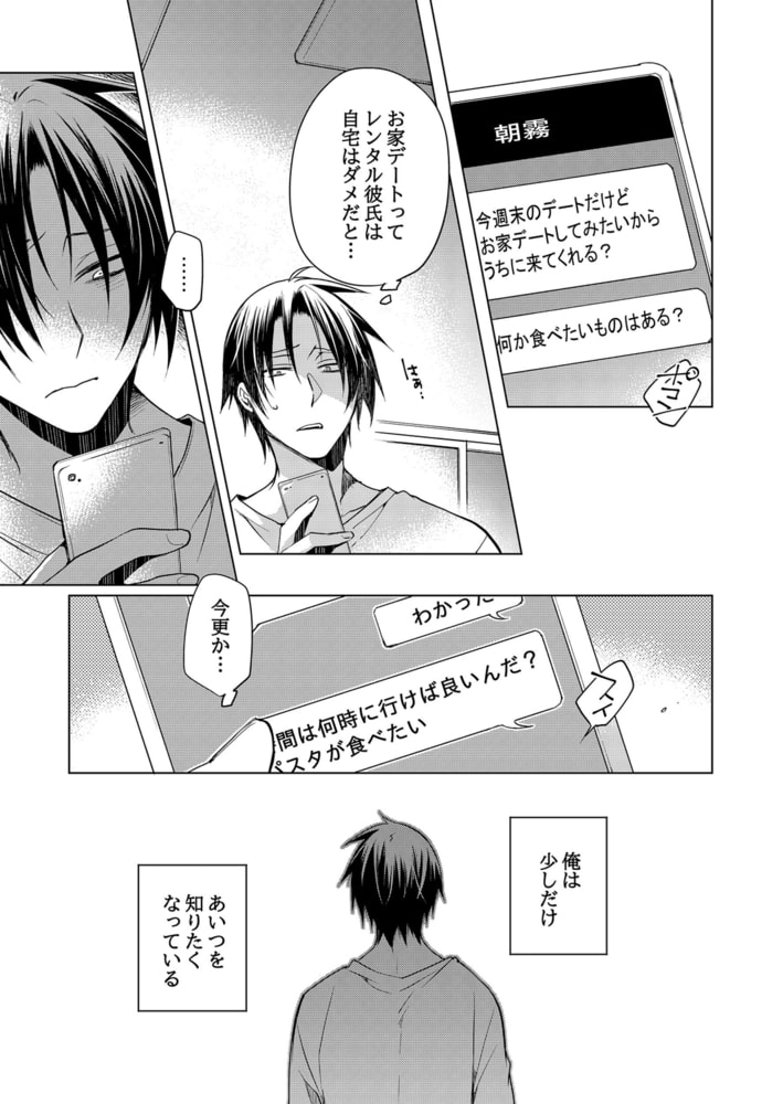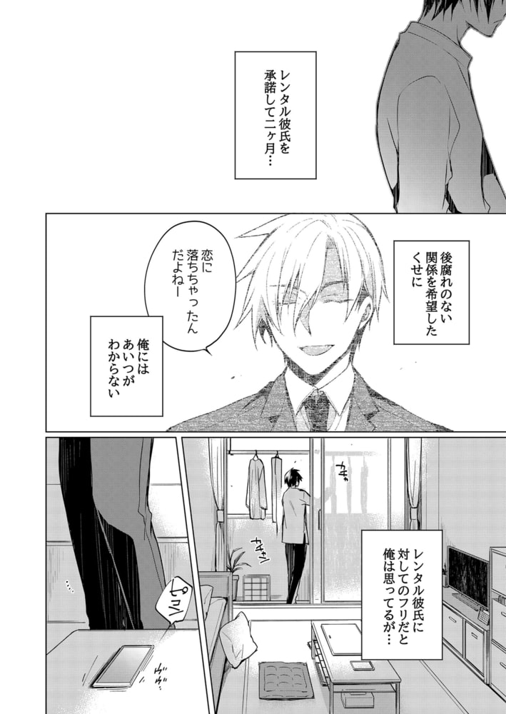 「レンタル彼氏」を運営しているお店の事務員として働く市倉は、ある日急病で倒れたキャストの代打依頼をされる。買い物の付き添いだけだからとオーナーに説得され渋々承諾するが、朝霧という男の依頼は「デートの恋人役」だった。今更断る訳にもいかず、恋人役を演じる市倉だったが強引に朝霧の自宅に連れ込まれてしまい!?「デートはセックスまでがデートだろ?」と朝霧のドSな本性が露わになり、お尻やアソコをエッチに弄られる!抵抗しようとする市倉だったが、激しくナカを擦られ、体はどんどん気持ちよくなっていき…。デートの回数を重ねる毎に朝霧の調教はどんどんエスカレートしてく!