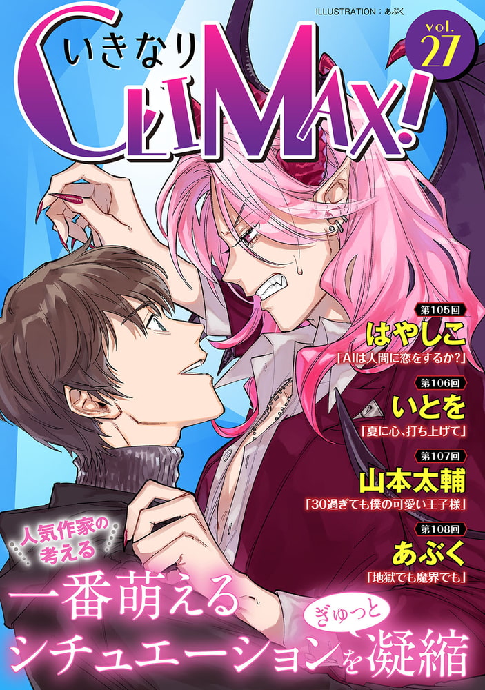 モバイルBL宣言発のリレー企画!BL作家ならではのこだわりを存分に詰め込んだショートマンガをお届けします。当企画では先生方が“萌える…!”と感じるキャラや関係性、シチュエーション等をふんだんに詰め込んで、ストーリーのクライマックスのみを抜粋しました!!人気作家の性癖がぎゅっと凝縮された作品が読めるのは『いきなりCLIMAX!』だけ☆ 執筆陣は毎回変わるのでお楽しみに!