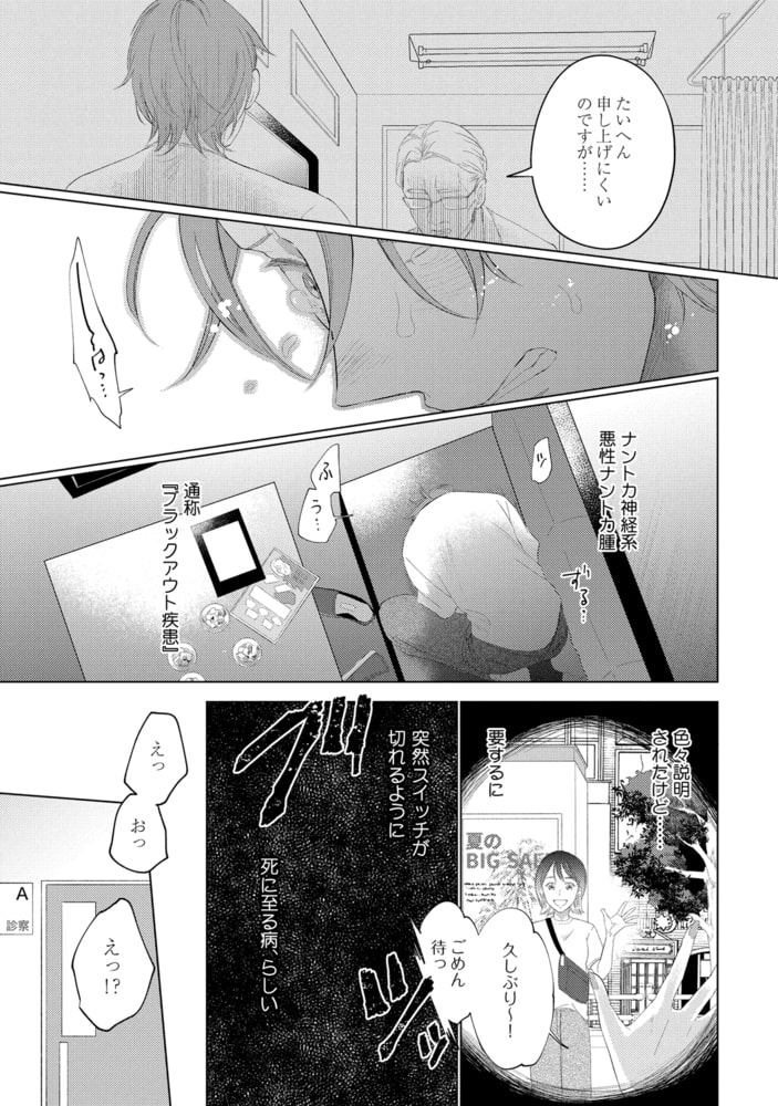 23歳の夏、余命宣告されたジュンタは、ずっと想いを寄せていたマナトに勢いで告白をしてしまう。 関係が壊れてしまうことも覚悟していたジュンタだったけど、マナトから「俺の恋人になるからには、簡単に死なせる気はない。死ぬ気で生きろよ、クソ野郎」と予想外の宣告をされ…? 恋人になったふたりは、少しずつ…だけど確実に関係を深めていきーー…。 余命宣告された攻×絶対に死なせないマン受のラブストーリー