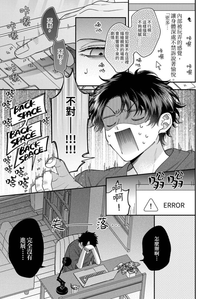 「明白了嗎…?不可以直接觸碰凸起的部分,而是應該像這樣從周圍開始不斷向內進攻。」小有名氣的小說家篠原,有一天突然被更換了責編,而他的新責編竟然是因為能幹而有名的高倉,而且高倉竟然還向他提出了一個讓人意想不到的建議。那就是「希望你可以寫色情小說」!!在篠原因為自己過少的戀愛經驗而煩惱時,高倉竟然主動提出「要不要和我試試?」…!?深入內褲的灼熱掌心將隱秘的快感一直帶到了篠原的最深處——