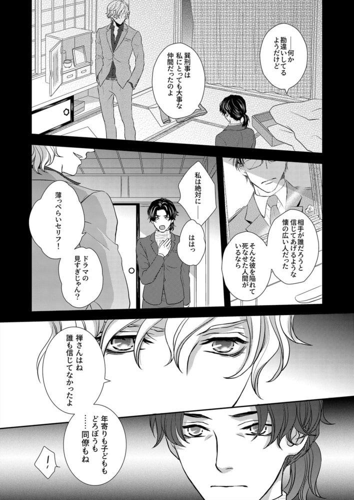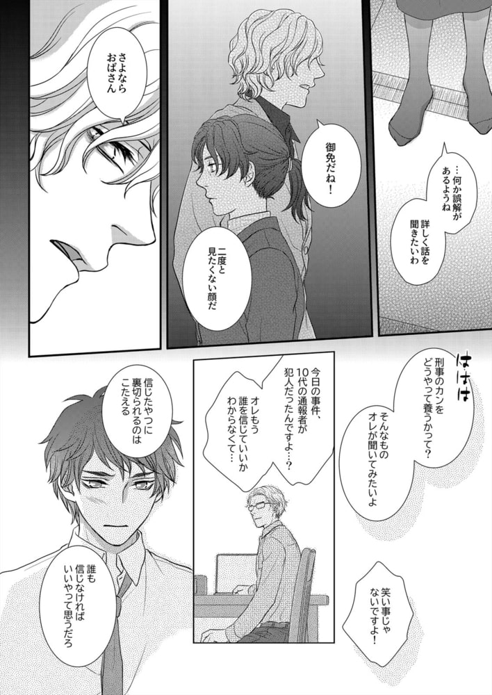 「本気で落として、いい?」不慮の事故により同性の恋人を亡くした刑事・御手洗。その告別式の日、軽薄そうなホストに声を掛けられる。周と名乗った男は、恋人と一緒に事故に遭ったものの、病院長の息子だからと優先的に治療を受け一命を取り留めた。こいつが居なければ、もしかして―。そんな恨めしさを知ってか知らずか、その日を境に周は事あるごとに馴れ馴れしく絡んでくるように。懐っこく奔放な彼に流されそうになるけど、簡単に絆されてたまるか。そう思うのに…奴の言動がどうして恋人と重なって見えるんだ?一方で周は御手洗に近付いたワケがあるようで――年下ホストに迫られた堅物刑事が見る真実とは…