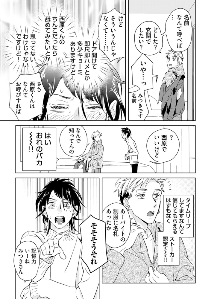 アナニー好きで引きこもりニートな河東緑月。ゲイの自覚はあるものの、その圧倒的コミュ障力により未だ経験なし。マッチングアプリに活路を見出そうとするも、待ち合わせ相手にビビって身を隠してしまうヘタレっぷりを発揮。最寄りのコンビニであからさまにキョドっていると、イケメン店員の西原が助け舟を出す。「経験したいなら俺とかどう?」 斯くしてヒキニートの初体験は実現することになるのだが!!? 新鋭・今井ささるによるタイムリープエロス。毎月第4土曜に続話が追加されていきます。