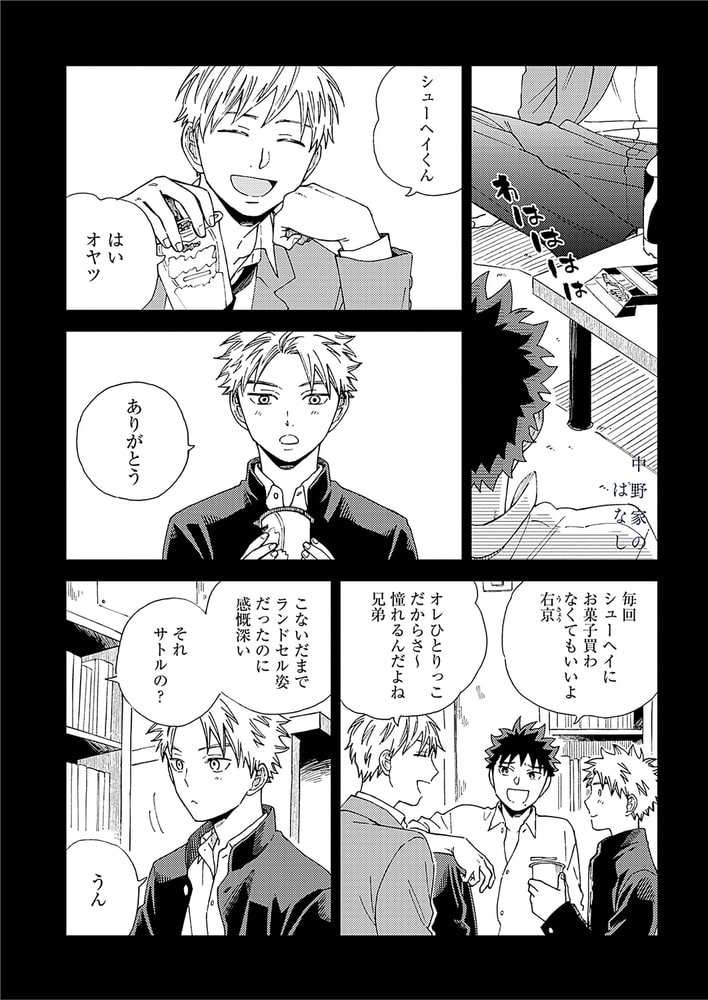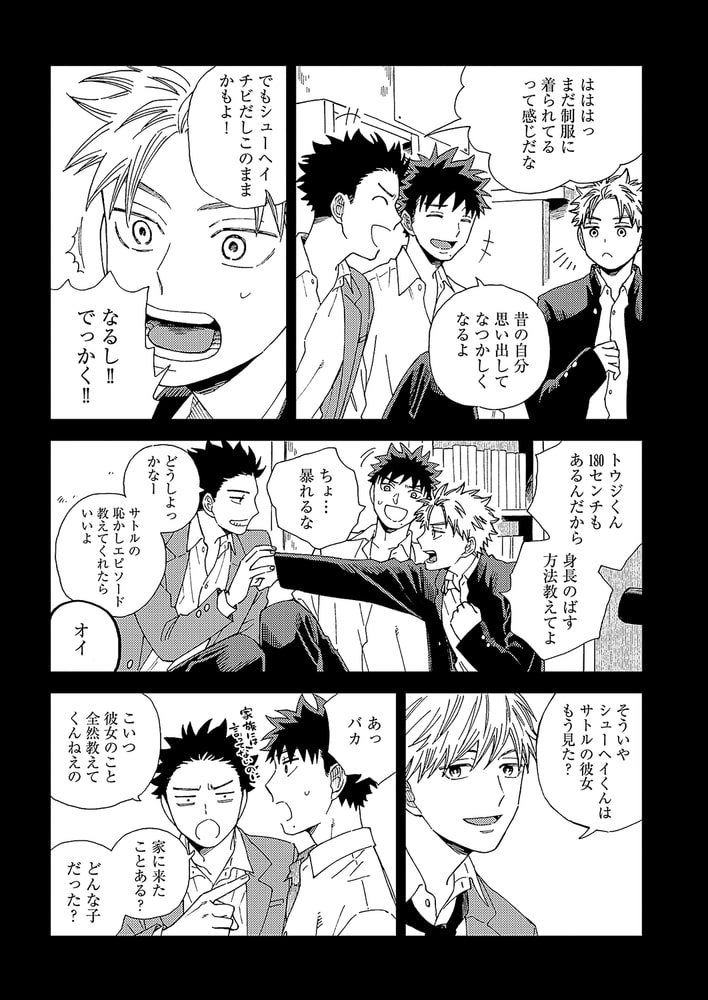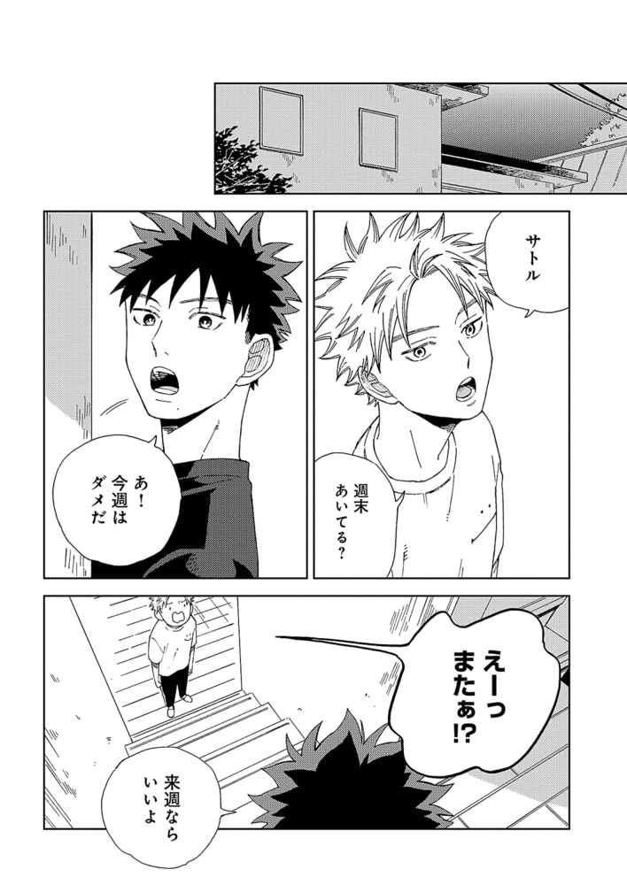 サトルに好意を寄せていることを知られないよう過ごしていたシューヘイは、「好きな人ができたら相談に乗る」というサトルの言葉に深く傷ついてしまう。顔を合わすことすら苦痛になり家出をする。