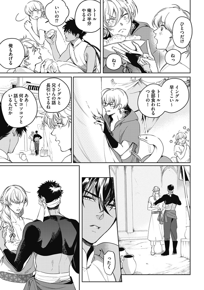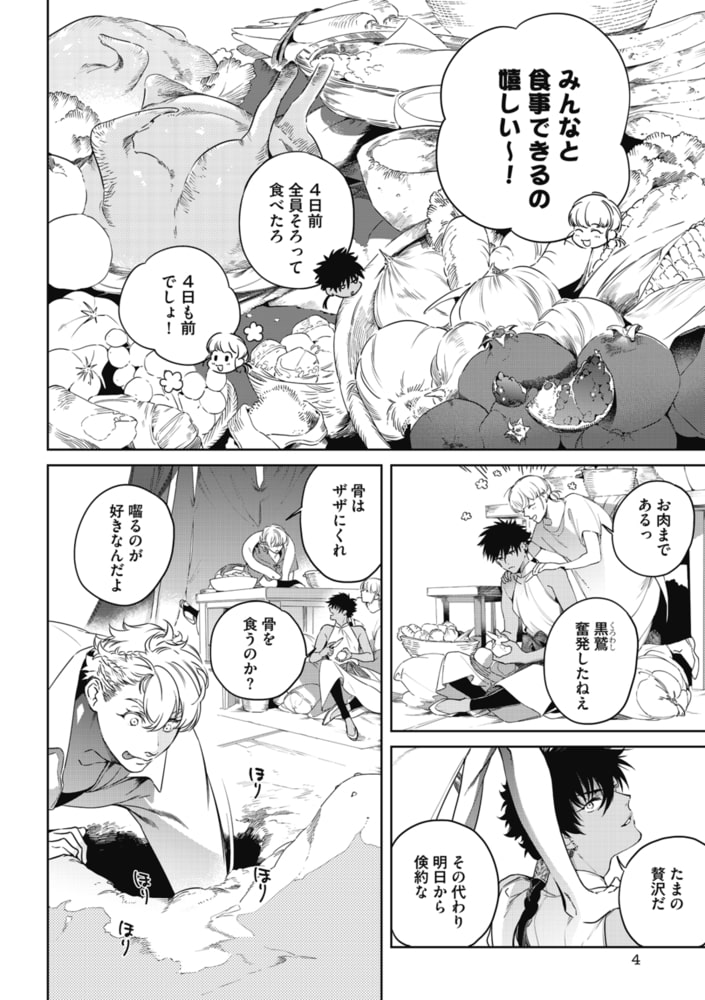 元奴○商人の黒鷲は、とある争いで奴○を解放することになってしまうのだが、彼らを仲間とあらため新しく流民の集落の長となる。雪の国からやってきたアルキルとその弟、幼馴染のトールやイングル、水売りの集落からきたビャクなどと共に力を合わせ、皆が住みよい集落を作るために日々奮闘しているのだが…