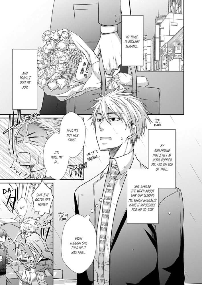 On the rainy day that Kumano resigns from his job because of his big schlong, he runs into a small, cute guy named Miyake, and gets completely soaked!! When Miyake invites him to his home as an apology, Kumano’s girthy johnson gets turned on by his sly eroticism…!! When Miyake realizes, he says “If this goes in me, I think my body might break!” and starts shaking his hips…!? Afterwards, Kumano returns home like he’s trying to escape, but when he starts working at his new job, he finds the same Miyake there that he had such a tempestuous encounter with just a few days before…!!