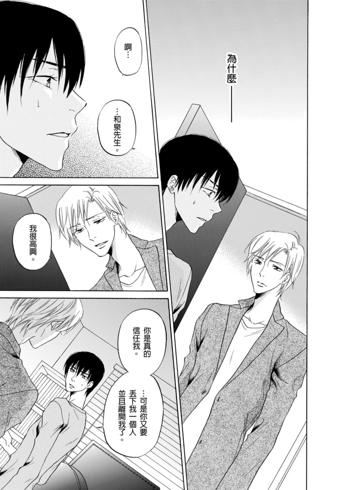 「這是怎麼回事…肚子內好痛…」高中老師和泉相貌俊美,凡舉女性,不論老師或學生總是向他表白,對此深感厭煩。這所高中來了一位帥氣且溫和,宛如書中走出來的新任老師・椎名。總是與人保持適當距離感的和泉與開朗的椎名親近起來,兩人逐漸縮短距離…然而在某天,和泉在椎名面前卻突然引起異變!?身體突然開始發情,顫抖的腰部停不下來!「摸摸我…拜託你。」椎名對和泉發熱的模樣感到困惑,卻一邊溫柔地摩擦他。若不停止,兩人的友誼便會就此告終,但發情的肉體卻停不下來…自己沒臉去見椎名了——溫柔男×豔麗男,兩人因「發情」而一度破壞的關係,究竟會如何發展!?