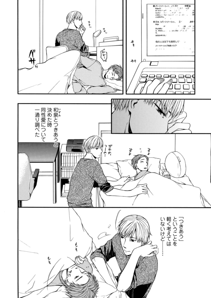 会社で同僚の結婚話を聞き、ますます自分たちの未来が気になる睦月。女子社員たちの独身男性社員の噂話に、和泉が睦月の恋人だと知ったらどんな反応をするのか?とモヤっとした気持ちになる。休日、外出先でふたりはカップルイベントに遭遇し、自分たちの結婚式の話を何気なく始めるが…。