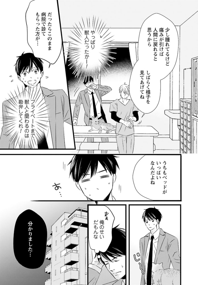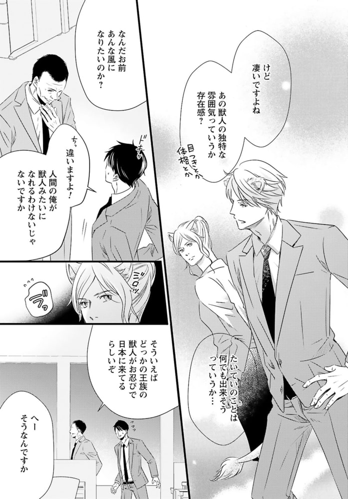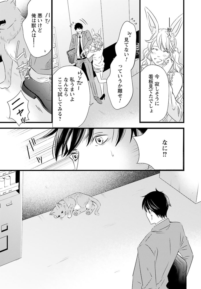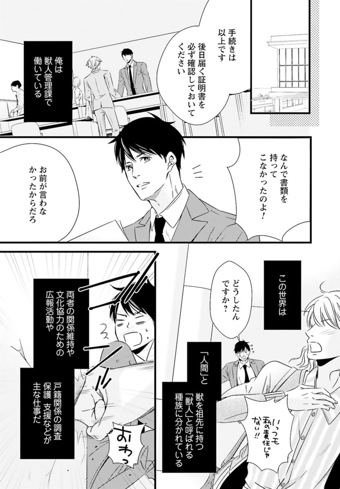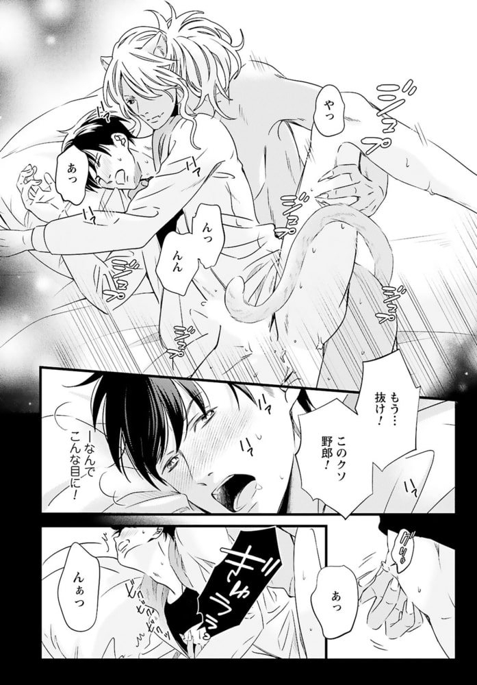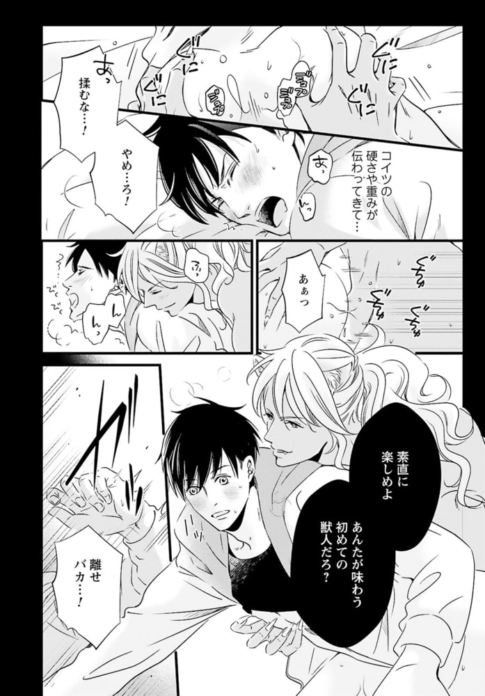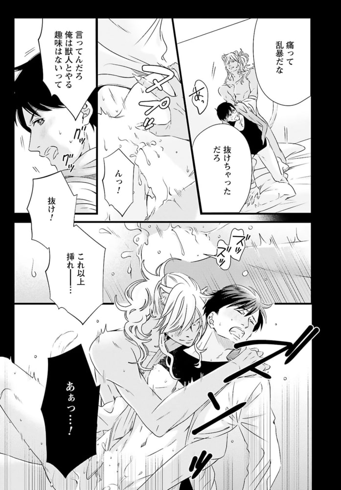 「あんたが味わう初めての獣人だろ?」獣人が苦手なのに、獣人管理課で働く公務員・松浦イチは、意図せず猫姿の獣人を踏んでケガを負わせてしまう。痛みがひくまで人の姿に戻れないようで、仕方なく家に連れ帰り眠りにつくと……なんでか腰がムズムズして目が覚めて――?「世話してくれた礼に気持ちよくしてやるから」と、イチの性器を弄るのは褐色の肌と赤い瞳の外国人!?人型になった獣人の舌がお尻に入りほぐされ、奥まで暴かれて――。こんな気持ちいいセックス初めてなのに、それが男で、獣人相手だなんて…!!しかも、その正体はあり得ない相手で……。自由奔放な猫獣人セレブ×コンプレックス持ち庶民の、人生を変える運命の恋――。