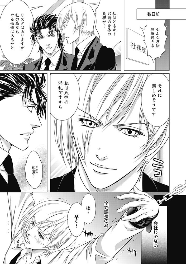 恋をしたことがない淫乱リーマン・氷室は涼しい顔をしていつもエロいことばかり考えている。ある日社内で不正をしていそうな社員・木村の商談に同行したところ、別室に案内されて、性接待を受け契約を締結している現場を目撃してしまう。