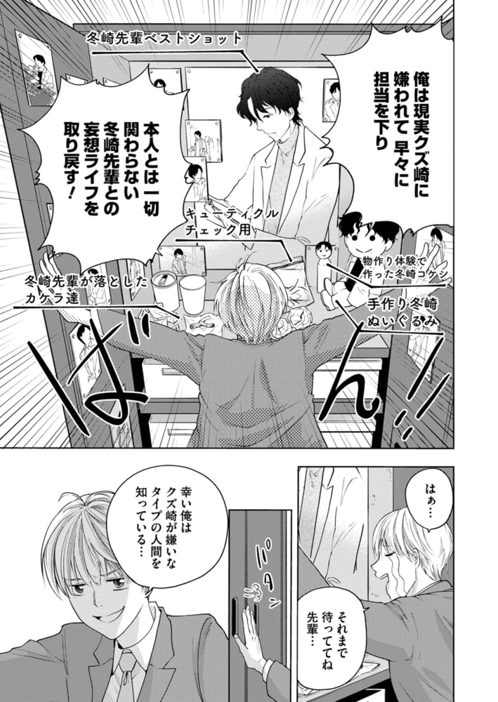 顔が好みなだけの大学時代の先輩、冬崎を頭の中だけの空想の恋人として楽しんでいた蒼。しかし、現実の冬崎先輩と再会&仕事を一緒にすることになってしまう。蒼は、現実の冬崎が人として最低の人物だと知っているため、空想以外では関わりたくなく、冬崎が気に入ることをしないように奮闘するが…。