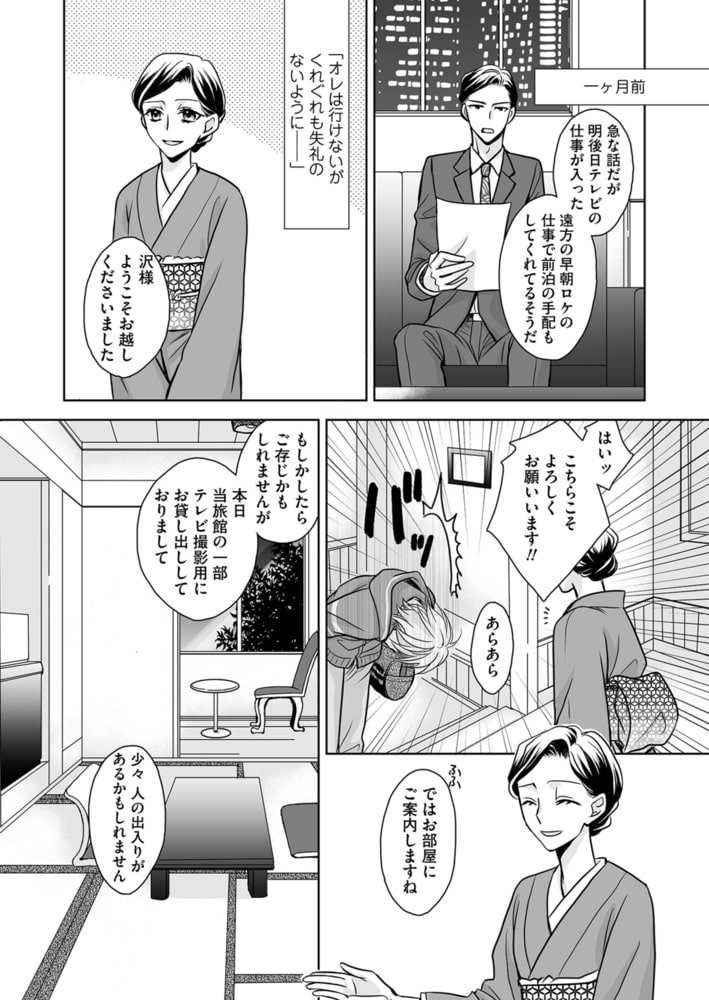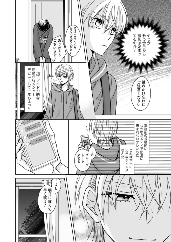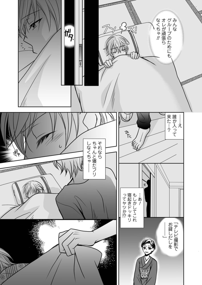 売れないアイドルグループのリーダーの慶人は、バラエティ番組の出演が決まり、グループの認知度を上げるチャンス! と、喜んでロケ地の前泊へ出かける。翌日に備えて早めに就寝したが、人の気配で目が覚める。「もしかして寝起きドッキリ!?」と、様子を伺っていると侵入者は慶人の身体をまさぐり始めて…。