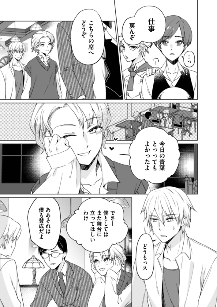 閉店間際、泉の働くバーにやってきた青葉たち。泉はまだ青葉と気まずい状態で話しかけることもできず、モヤモヤしたまま仕事をしていた。さらにやたらと青葉にベタベタする男がいて、気になって仕方がない。オーダーを取りにその席へ行くと、その男は泉の同級生かつ恋のライバルだった“桃生”と判明! 最悪なタイミングでの偶然の再会に、言い争いから殴り合いまで広げるふたり。一方で、なとりに自分の行いを問い詰められた青葉は、泉への切実な想いを改めて口にするーー。