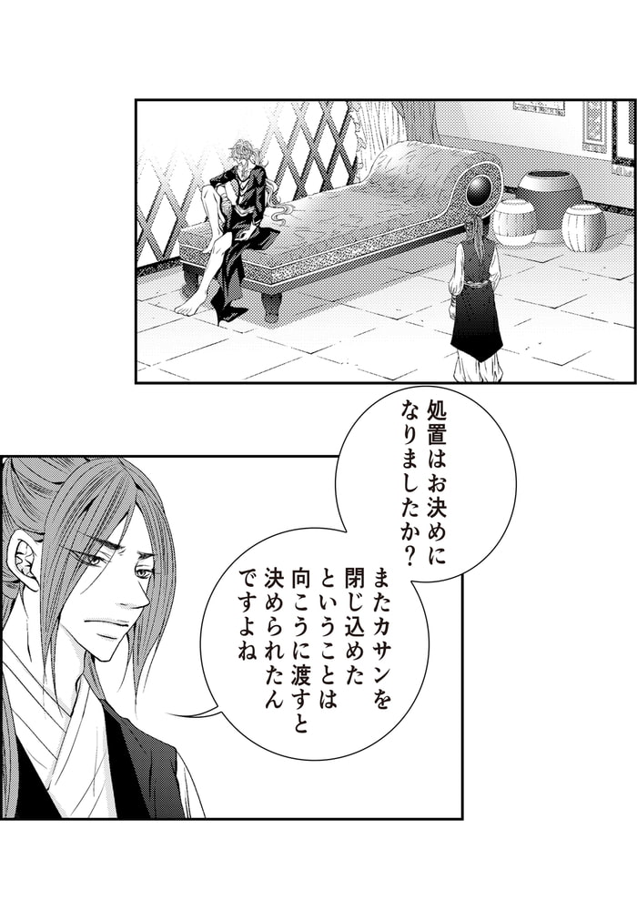 家族を皆殺しにした張本人がイゲンであるということをまだ知らないカサンは、彼の湯浴みの世話をする奴○となり、冷血漢とばかり思っていたイゲンに得体の知れない魅力を感じ、徐々に惚れ込んでいく。