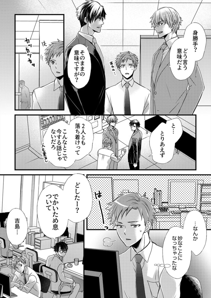 「ヨダレ垂らして…そんなに挿入れて欲しかった?」セックスがつまらない、そんな理由で彼女にフラれた鉢谷。ヤケ酒をあおった勢いでSM専用の出会い系に登録し、Sのミユキに会うことに。しかし、やってきたのはまさかの男!思わず身構えたけど、聞き上手なミユキにあれよと流されて…気付けばベッドでお尻開発!?拡張された穴は熱く太いアレをぬぷぷと咥え込んでいく。初対面の男相手に、こんなことされて…き、気持ちイイッ!!しかも翌日、ミユキが同じ会社に勤めていると判明。驚き固まっていたら、異変を察知した同期に突然押し倒されて…!「他の奴になんて渡さない」え、ちょっと待って、なにこの超展開。エリート2人から迫られる、まさかのリーマンずラブ!?