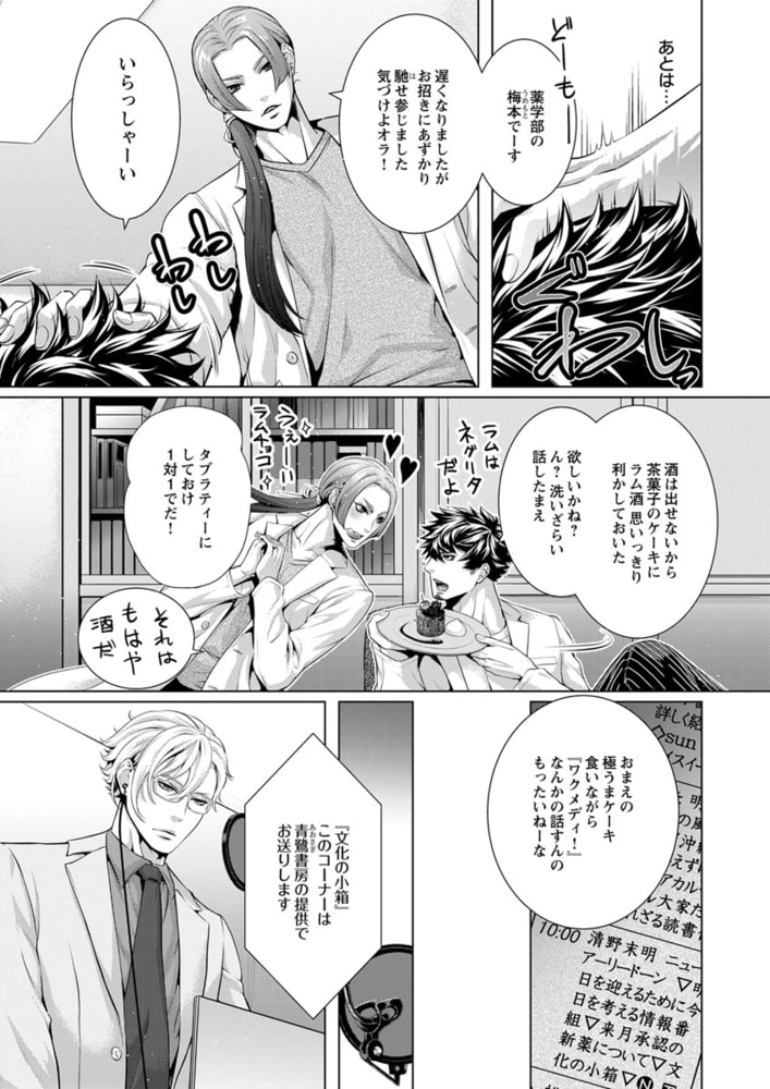 「俺の声に反応しちゃってるの? 俺が…欲しい?」社会派評論系ラジオ番組を持つ清野未明(せいの・ほのか)は、現代社会の問題を真摯に取り扱う人気パーソナリティ。クールで硬派なDJとして辣腕を振るう未明だが、実は19年にわたり、アダルトネタ満載の深夜の人気モンスター番組『チェリーチェリー★ナイト』のカリスマDJ・エレクト会田(あいだ)の大ファンでもあった。なぜなら会田は、孤独だった少年時代の未明にとって、たったひとりの「神様」だったから。