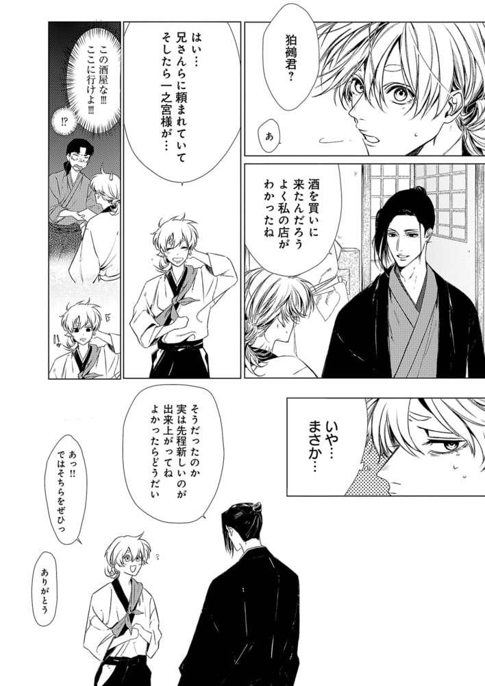 兄弟子たちの遣いで酒屋へ向かう狛鵺。そこは以前、夜を共にした一之宮が営む店だった。思わせぶりな振る舞いにすっかり舞い上がる狛鵺。