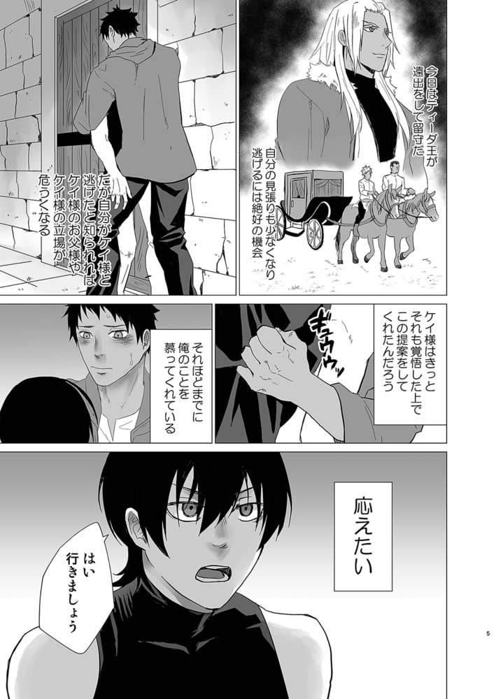 王が留守の隙に逃亡したイオリとケイ。穏やかな逃亡生活も束の間、