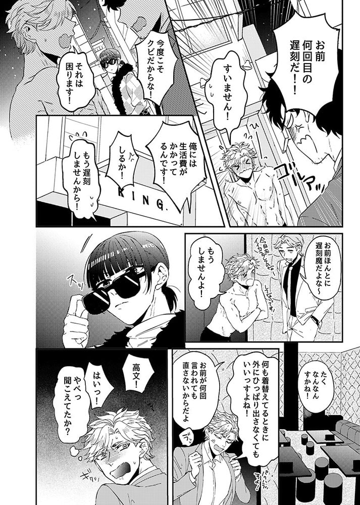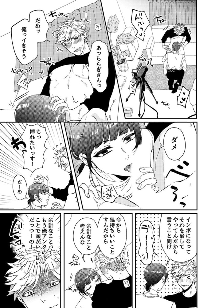 ホストとして働いている貧乏な主人公、高文。そのうえ遅刻グセが激しく、店長からは次やったらクビだからなと言われていたのだが―。また遅刻してしまい、着替え中の半裸状態で外に連れ出されて説教されていた。そこに偶然通りかかったのが、ゲイビの監督兼プロデューサーをしている蘭だった。高文を一目見て気に入った蘭は早速、店長に話を通して高文をスカウト。高すぎるの契約金を提示された高文は二つ返事でゲイビデオの世界に飛び込むこととなった。後日、高文はカメラマ〇から蘭が売れっ子のネコだったことを聞かされる。蘭のゲイビを見た高文は、蘭を抱きたいと意識するようになってしまった。すると何故かそれ以降、蘭意外で勃たなくなってしまった。高文がイ〇ポになったと聞いた蘭は、俺で勃たないならクビだと言って高文のを舐めだして――。「ら、蘭さんっっっ…!口の中が気持ち良すぎてっぅ……、イクッ!!」「まって、蘭さんッ!マジで名器すぎて今、動かれるとまたイかされちゃうッ!」新人ゲイビ男優が美形プロデューサーの名器テクでイかされまくりっ。撮影場で行われる大胆で過激なセックスをお楽しみください。オリジナルボーイズラブコミック