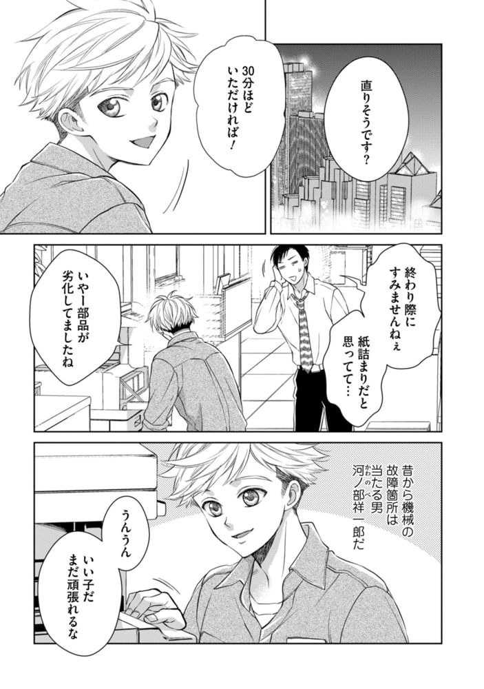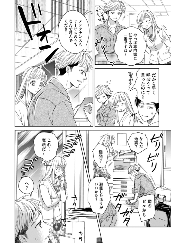 ごくごく普通の一般人、河ノ部祥一郎は取引先の会社で爆発に巻き込まれる。側にいた女子社員に「これ…魔法だ…」と言われ耳を疑う。襲われても無傷なうえ、腕が発光し始め体に異変が起こって動揺する祥一郎。騒ぎを見た魔法使いの皆神は、祥一郎の劇的な覚醒に興味を持ち…。新人魔法使いと師匠の、乱れた現代魔法ファンタジーBLの開幕! 電子版コミックス用に描きおろしコミックもついて、ボリュームUPです!