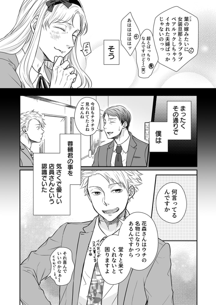 女装趣味は好きじゃないけど職業柄身についた女子力でついついアドバイスしてしまう蓉輔に見守られながら(?)のびのびと女装を楽しむ清三喜。